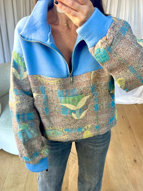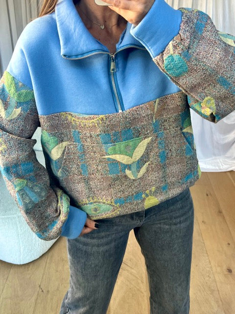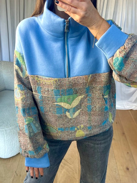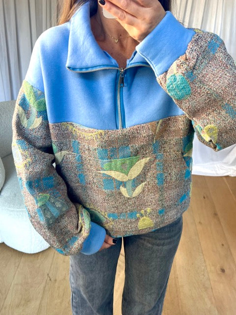 • Sweat bi-matière manches longues, col zippé, élastique sur le bas, poches sur le côtés