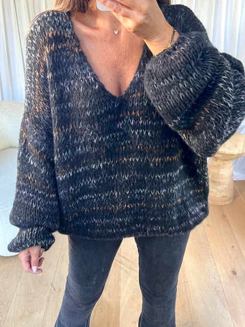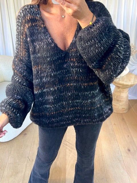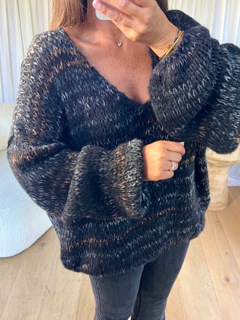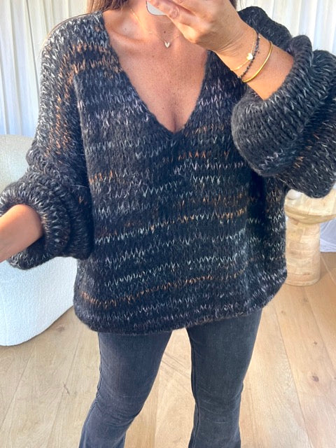 - Pull en maille manche longue, col V