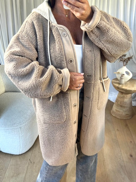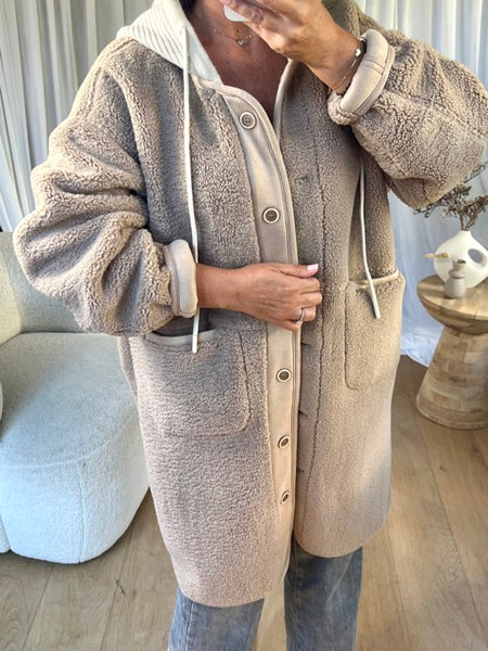 - Manteau moumoute avec capuche amovible, boutons détachables tout le long, 2 poches sur le devant, qualité ++, doublure toute douce suédine