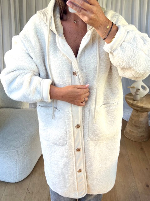 - Manteau moumoute avec capuche amovible, boutons détachables tout le long, 2 poches sur le devant, qualité ++, doublure toute douce suédine