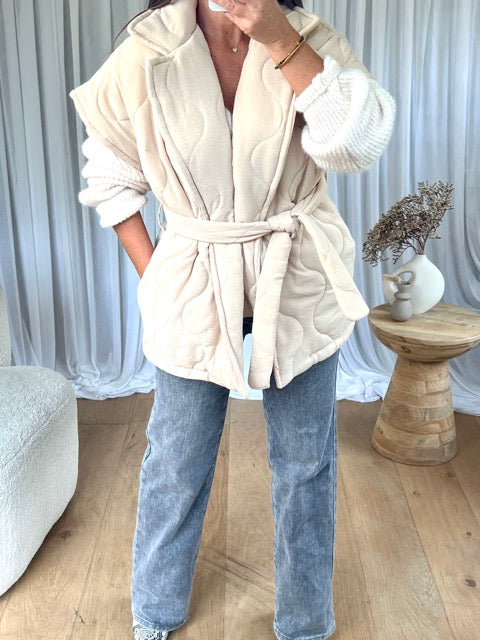 - Veste matelassée ceinturée, 2 poches à l'avant