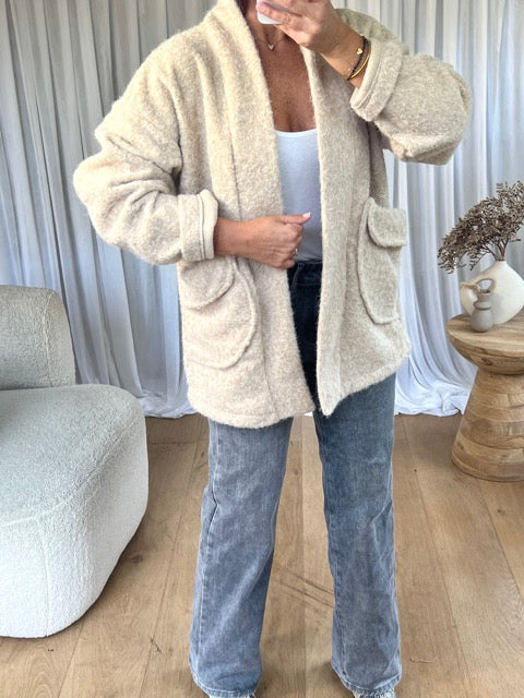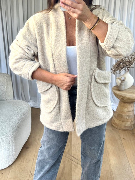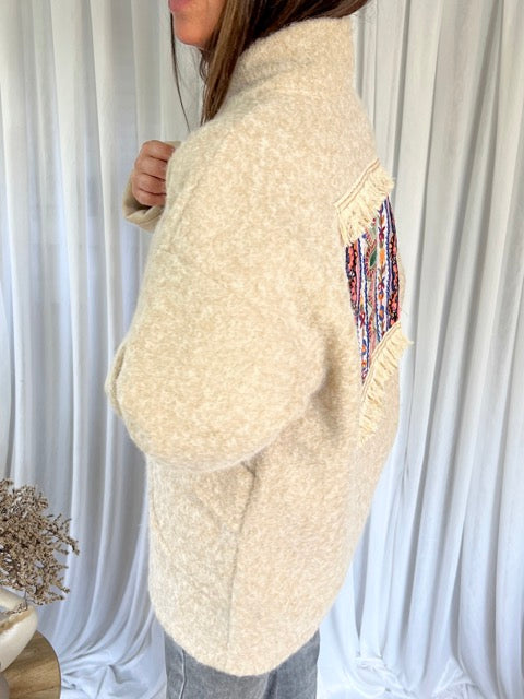 - Veste effet feutrine manches longues, 2 poches, , doublure satinée, gros motif tapisserie dans le dos