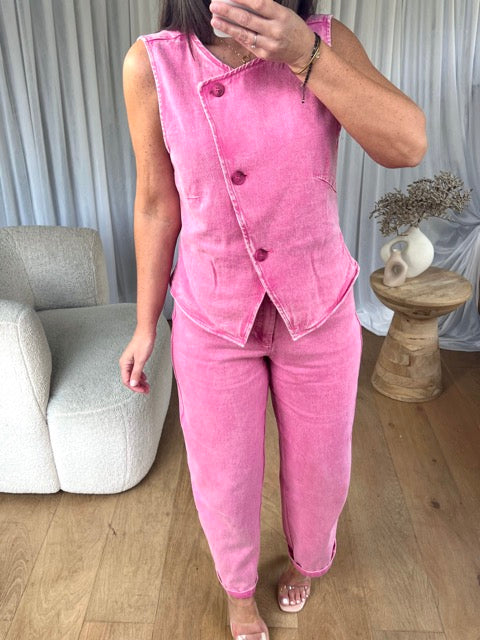 - Détail look 4 : Le gilet denim Pink