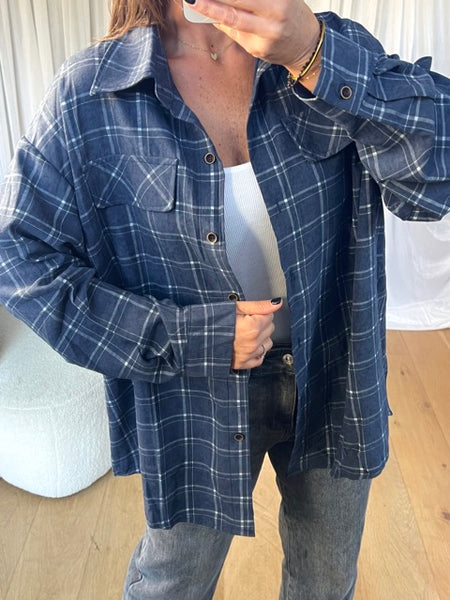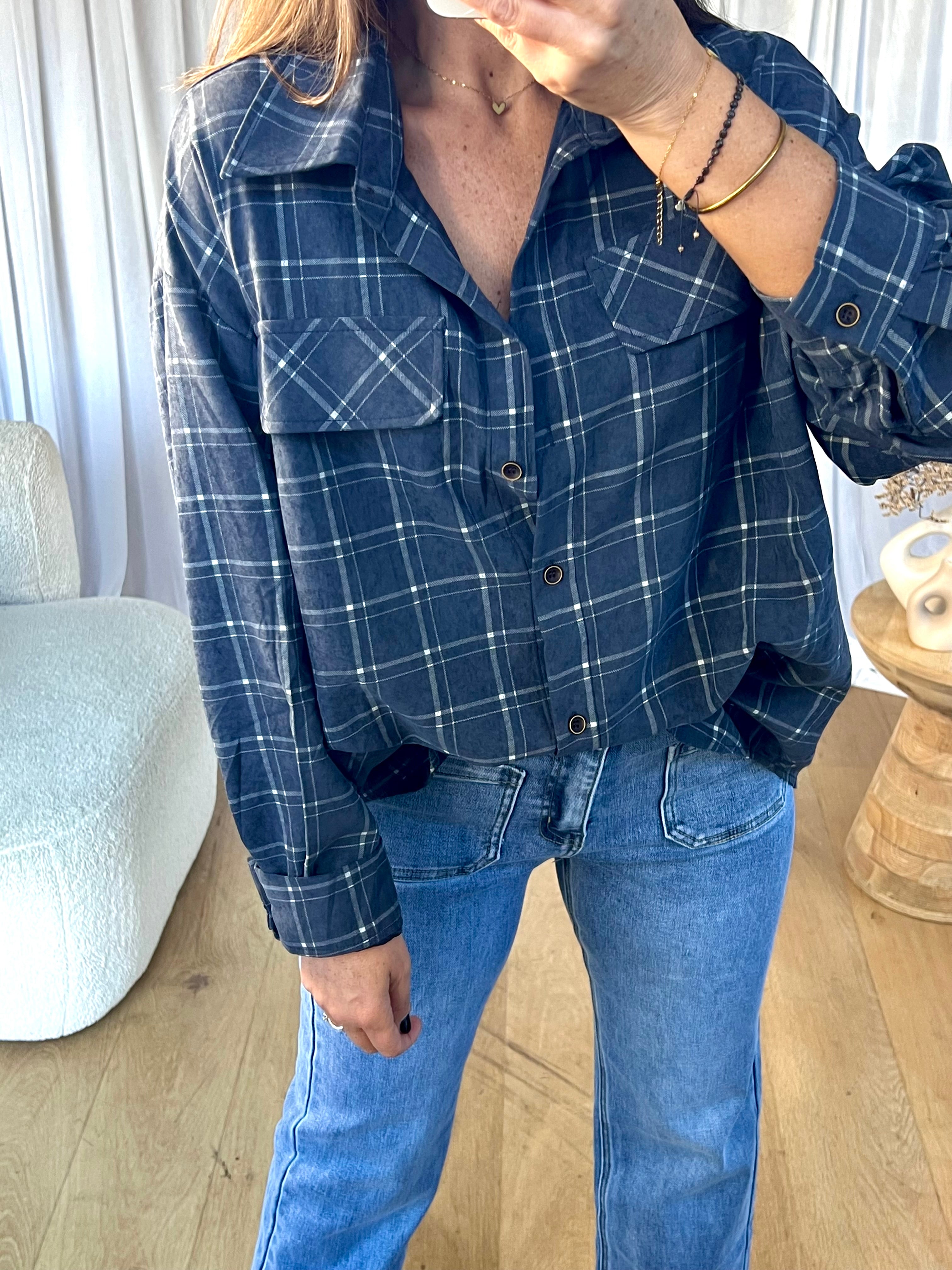 - Chemise à carreaux oversize, fausses poches à l'avant